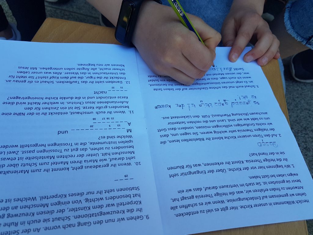 Hier ein paar Eindrücke des Besuchs unserer katholischen Religionsgruppe (4. Klassen) am 13.06.23 in der Theresienkirche.