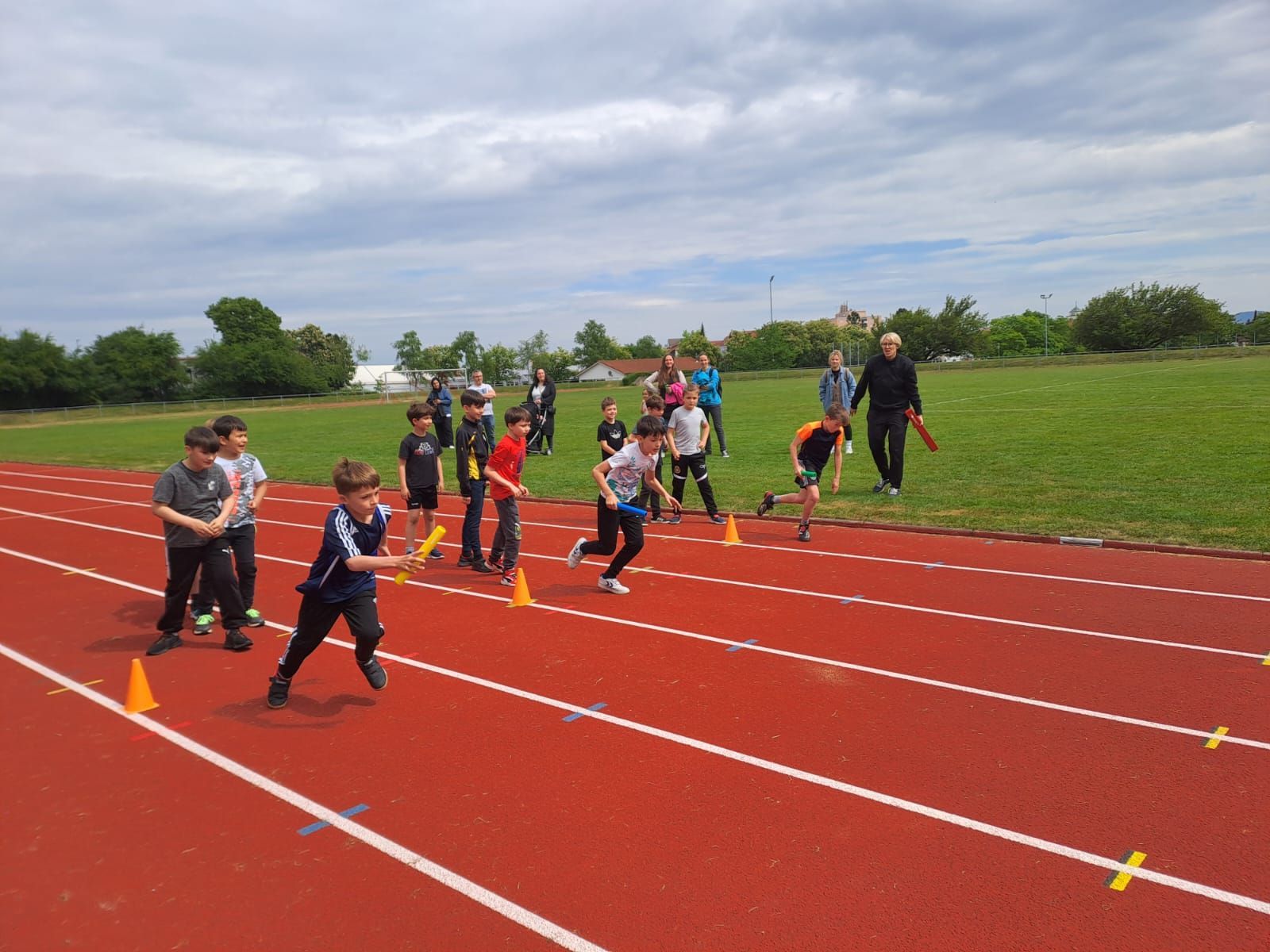 Am vergangenen Dienstag fanden die diesjährigen Bundesjugendspiele statt. Die Kinder hatten viel Spaß beim Springen, Weitwurf und Sprinten. Besonders spannend war der abschließende Staffellauf, bei dem Teamgeist und Schnelligkeit gefragt waren. Es war schön zu sehen, wie alle mit Begeisterung teilnahmen und gemeinsam einen sportlichen Tag verbrachten. Die Schülerinnen und Schüler waren stolz auf ihre persönlichen Leistungen und freuten sich über die gemeinsame Zeit sowie den fairen Wettkampf. Wir freuen uns schon auf das nächste Mal und hoffen, dass alle weiterhin so viel Freude an Bewegung haben!