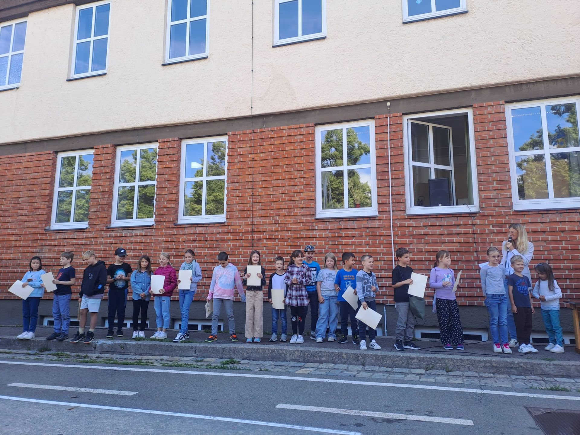 Am letzten Schultag vor den Sommerferien feierte unsere Schulgemeinschaft einen festlichen Gottesdienst in der Martin-Luther-Kirche. Viele Schülerinnen und Schüler gestalteten diesen lebendig mit: Durch Tänze, Fürbitten und gemeinsamen Gesang brachten sie ihre Wünsche zum Ausdruck und sorgten für eine lebendige Atmosphäre. Auch Frau Heizmann wandte sich mit persönlichen Worten an Kinder und Lehrkräfte. Sie blickte dankbar auf das vergangene Schuljahr zurück und verabschiedete alle Schülerinnen und Schüler in die wohlverdienten Sommerferien. Ein besonderer Moment war die Verabschiedung der Viertklässlerinnen und Viertklässler. Mit einem feierlichen Segen wurden sie in ihren neuen Lebensabschnitt entlassen. Zum Abschied sagen sie ein Lied und sorgten damit für einen gelungenen Abschluss ihrer Grundschulzeit. Das Team der Friedensschule blickt mit großer Dankbarkeit auf das vergangene Schuljahr zurück. Wir wünschen allen Kindern und ihren Familien eine erholsame Sommerzeit und freuen uns auf ein gesundes Wiedersehen im neuen Schuljahr!